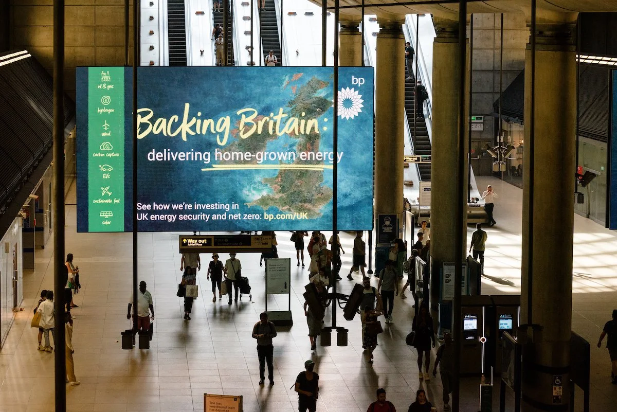 BP ads in Canary Wharf, 2022, credit Fossil Free London. The influence of fossil fuel advertising on decision makers was raised in the debate, with DeSmog research revealing that over 240 fossil fuel campaigns ran across the TfL network in six years, with companies like BP booking out every ad space in Westminster and St James’ Park stations on several occasions.