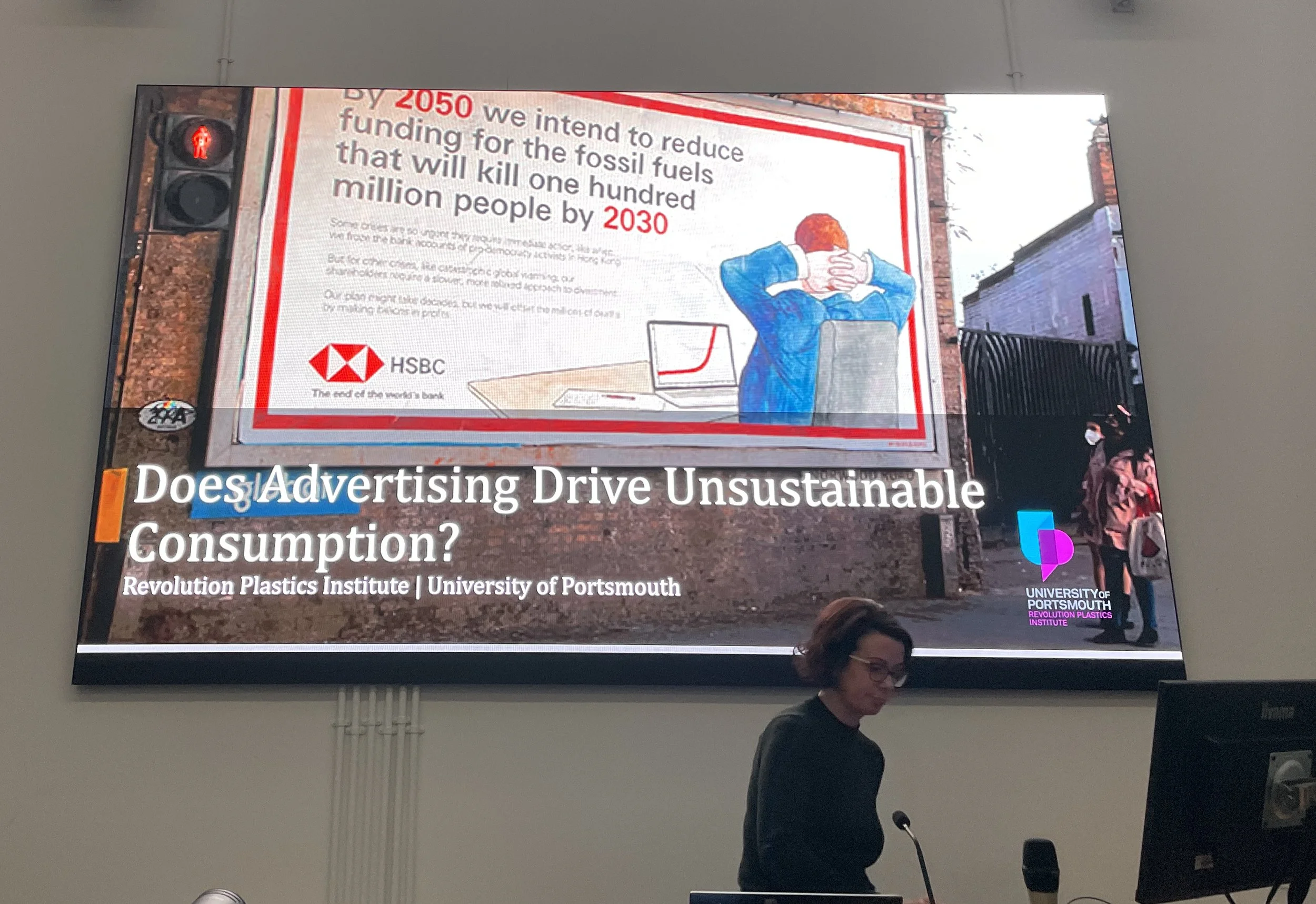 Nicola Wilks from Adfree Cities discusses advertising bans at a University of Portsmouth event in October 2025